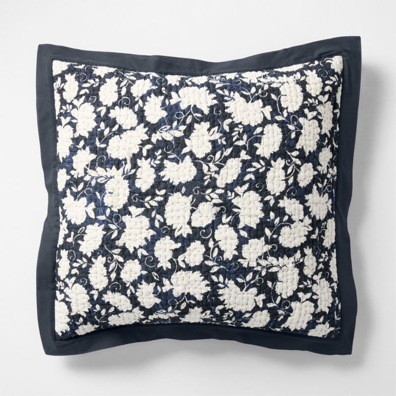 • View Celeste Organic Cotton Midnight Navy Blue Floral Euro Bed Pillow Sham - image 1 of 10