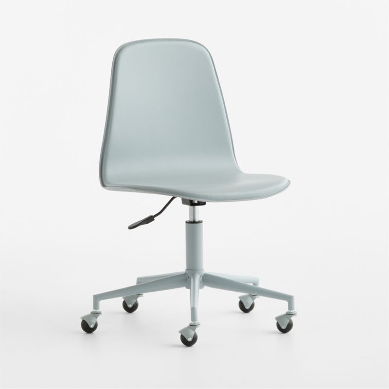 Our seamless, modern take on the classic desk chair, this supportive design lets the good times roll. Beauty meets functionality with a sleek, curved silhouette and 5-leg metal base. The padded leather seat swivels 360 degrees for easy maneuvering. Designed to grow with kids, this chair also adjusts up and down, and rolling caster wheels travel smoothly over wood, carpet or area rug.