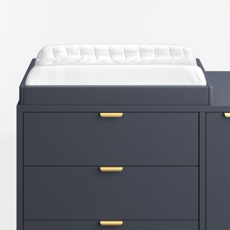 This smartly designed topper attaches easily and securely to our Classic deep navy blue dresser to transform it into a changing table. The topper has a felt-lined base to protect the dresser's surface—and when your baby outgrows diapers, the topper comes off in a snap.