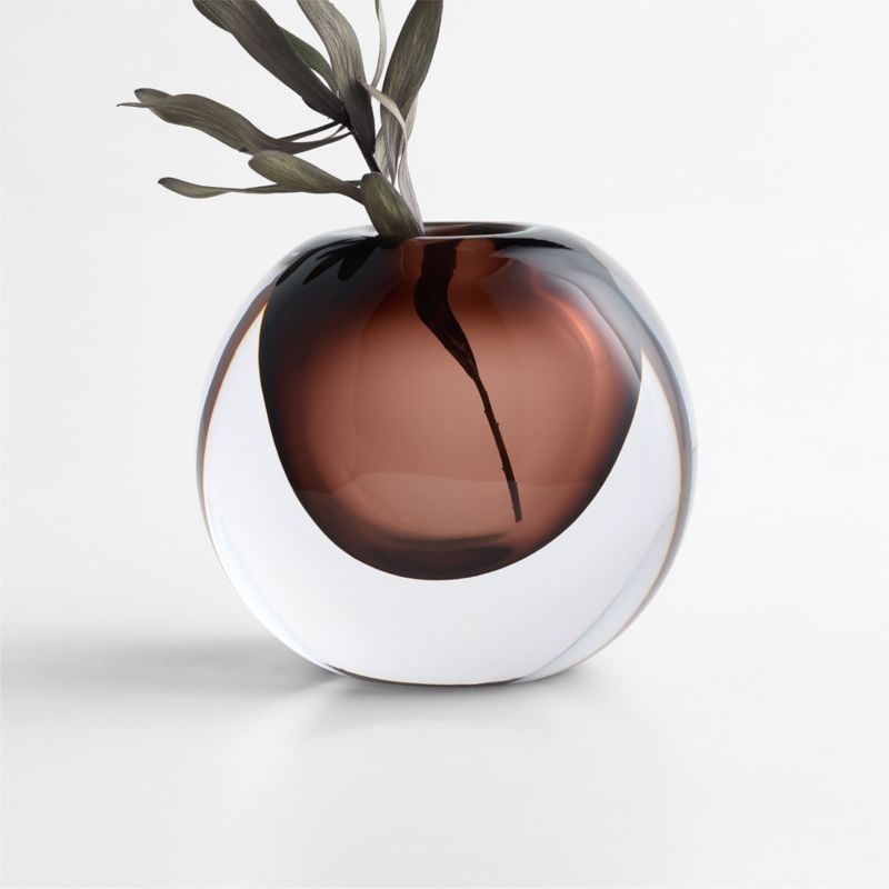 Channeling a mood that feels romantic, sculptural and emotionally resonant, our Cognac vase captures the seductive appeal of '70s glam decor. An amorphous volume of warm brown glass is suspended within a clear sphere for a floating, organic effect. Hand-blown by highly skilled artisans, the luxe vase transforms simple stems into a dramatic statement.