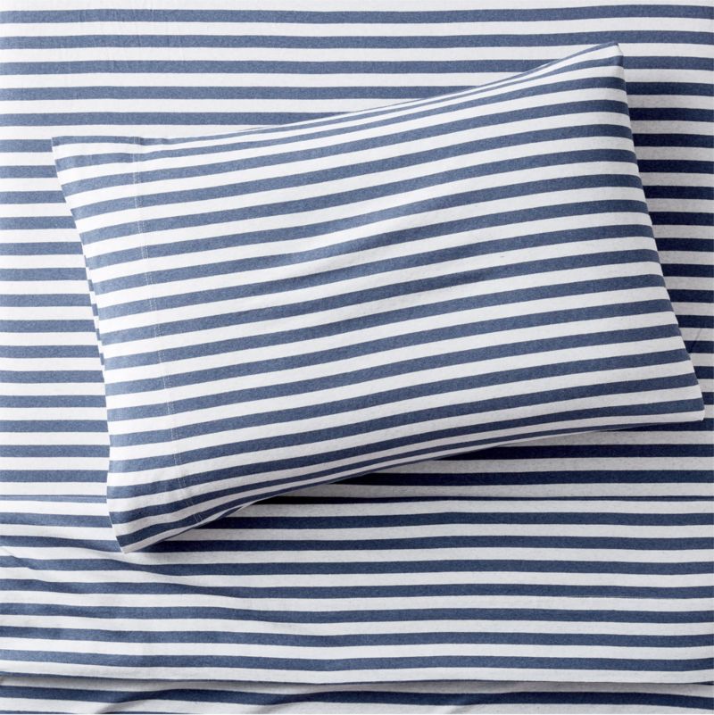 • View Comfy Tee Blue Stripe 100% Organic Cotton Jersey Kids Twin Sheet Set - image 2 of 5