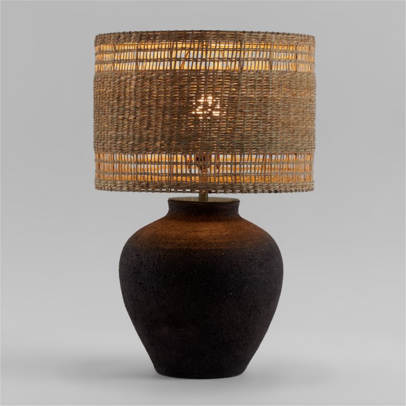 Corfu Black Table Lamp With Woven Natural Shade 26.6"