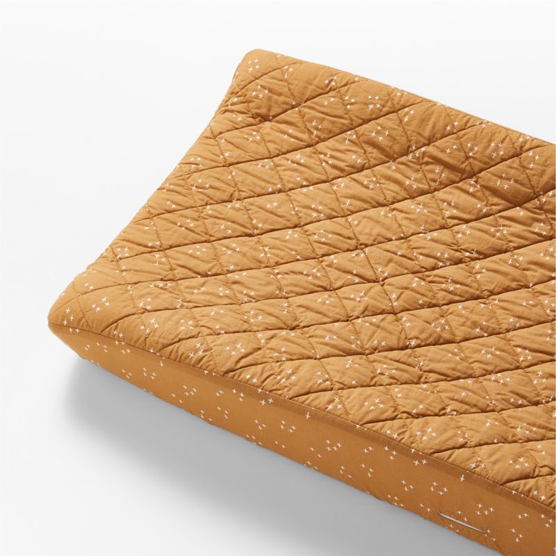 Our team of designers selected this relaxed, washed organic cotton so it's soft on baby's skin, while the rich, warm Brulee Brown hue was handpicked to make a modern color statement in the nursery. The hand-illustrated print adds an abundance of charm, and the attention to detail doesn't end there: A quilted diamond pattern provides a little extra comfort, and the sewn-in elastic band keeps it snug around a standard changing pad. Mix and match with our Cozy Cloud crib sheets for a colorful, coordinated look.