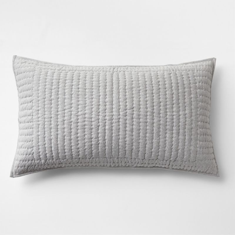 Softer than your favorite t-shirt—and just as casual-classic—our Cozysoft collection makes a bed you won't want to get out of. Traditional kantha quilting gets a modern casual update in this textural pillow sham. Heathered for depth, the light grey organic cotton jersey is stitched by hand into narrow channels for a dotted effect and a supersoft ribbed feel. The perpendicularly sewn border finishes the sham with subtle linear contrast. For an understated and ultra-inviting bed, add the matching quilt and the coordinating heathered light grey sheet set and duvet cover.
