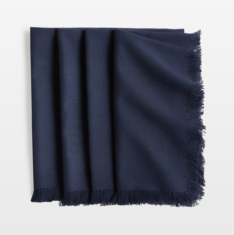 Finished on all four sides with generous fringe, our Craft napkin in indigo sets the table with relaxed yet sophisticated softness. The organic cotton napkin offers laid-back style at weeknight meals and elegant dinners then cleans up easily in the washing machine and dryer. For a coordinated and vibrant table, add our Craft fringe tablecloth or table runner in the same deep blue hue.