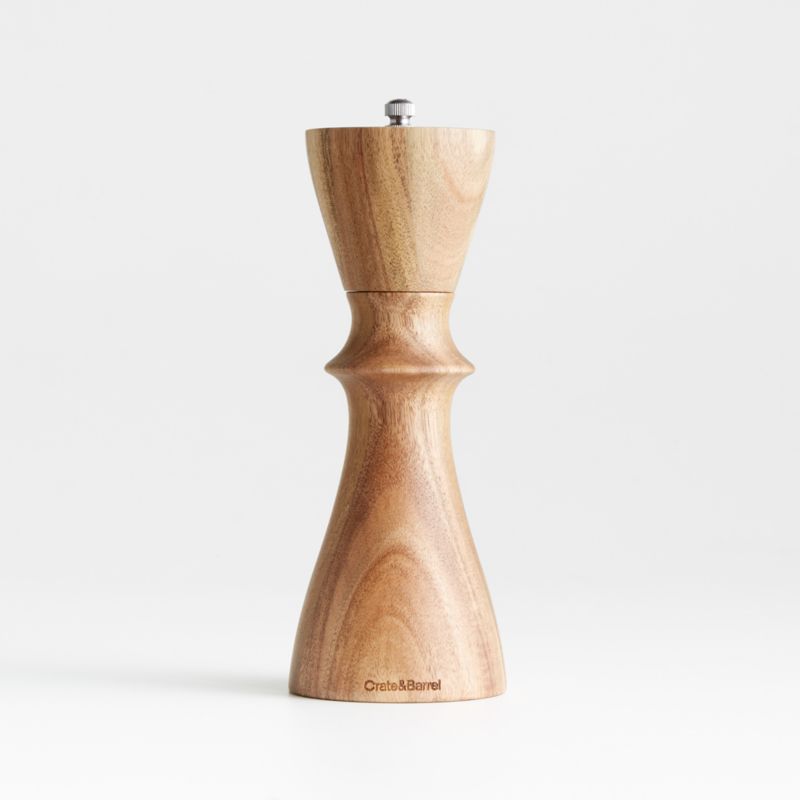 A salt mill far too gorgeous to keep hidden away in a cabinet. Sculptural and stately, our Aster salt grinder showcases the glorious graining of natural-finished acacia wood. The dramatically turned silhouette calls to mind mid-century modern woodworking while providing a comfortable grip. With a ceramic grinder inside that offers a range of coarseness, the mill is topped with a stainless steel finial emblazoned with the letter S. Pair with the matching display-worthy pepper grinder.