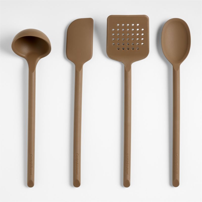 Crate & Barrel Mushroom Brown Silicone Utensils