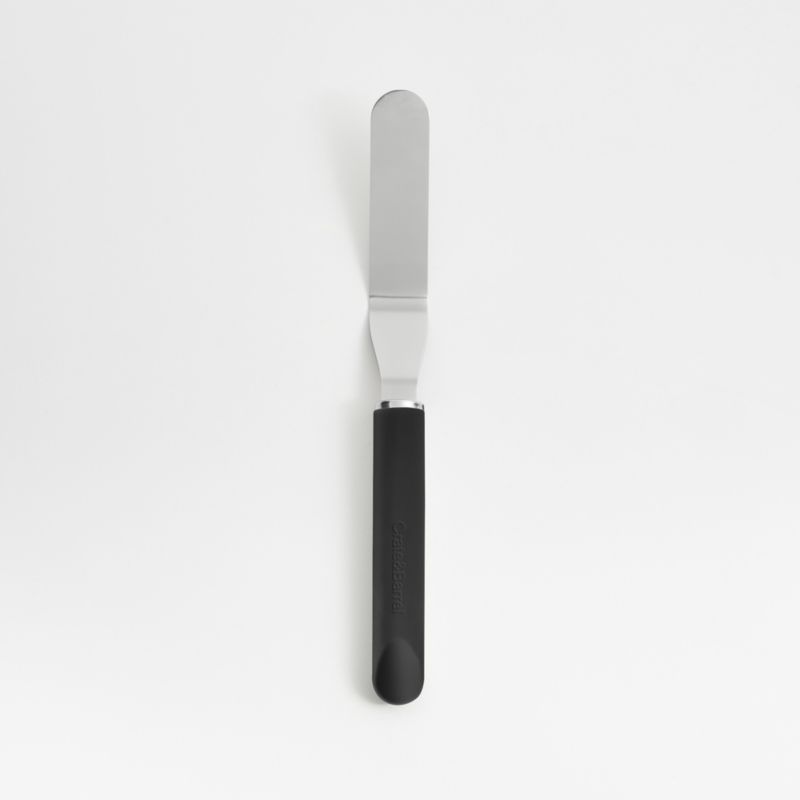 Spread and smooth buttercream, ganache, jam and meringue with our small offset icing spatula. Mirror-polished stainless steel shapes the sleek cake-decorating blade, while the soft-touch handle with a refined beveled edge provides a sturdy, comfortable grip. Combine with the other pastry tools in our exclusive Crate & Barrel collection for a well-outfitted workspace that's up to any baking challenge.