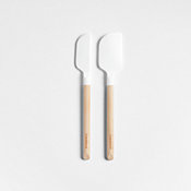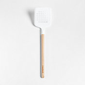 Stir, scoop, serve, flip and mix with our signature white silicone and wood utensils. Constructed with nylon cores for strength, the white silicone heads ably spread the thickest batters, flip and serve the heartiest potato pancakes or fold the most delicate meringues. Their flexible, tapered edges and soft-touch silicone won't damage non-stick cookware and resists stains, scratches and heat up to 600 degrees. Natural beechwood shapes cylindrical handles for a sturdy grip and a warm, classic look. We love the way the refined beveled edges finish the elongated handles with a dynamic detail. Create your own collection of Crate & Barrel utensils for a well-outfitted workspace that's up to any cooking challenge. Set includes: slotted spoon and turner, spoon, spatula, spoonula, ladle, 8" and 12" whisks and mini spatula.