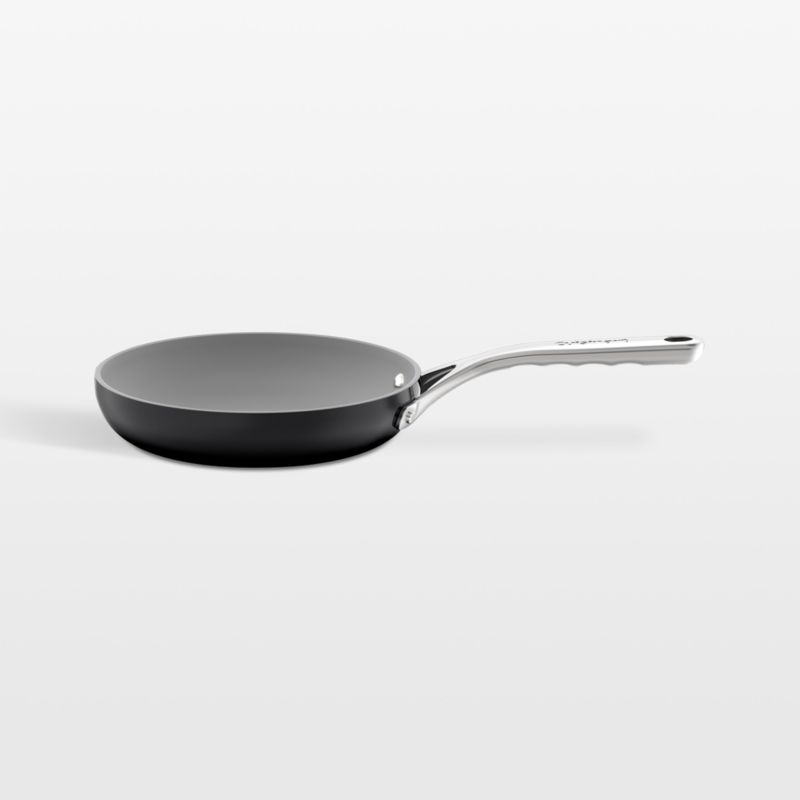 The Culinary Collection from Cuisinart boasts beautifully contoured cookware with ceramic cooking surfaces and comfortable handles. This aluminum skillet's glossy black exterior pairs handsomely with the grey non-stick interior. Crafted of stay-cool stainless steel, the ergonomic handle sculpted with finger grips makes it easy to move the pan from stovetop to oven to table.