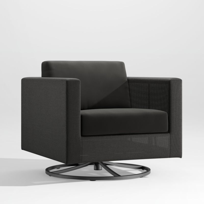 Dune Black Outdoor Swivel Lounge Chair with Black Cushions25.2height31.71width32.68depthMeasurements are in inches.64.01height80.54width83.01depthMeasurements are in centimeters.