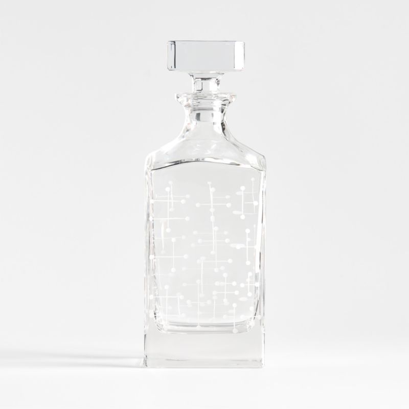 Combining small circles and intersecting lines, the geo-forward Dot pattern is one of the most recognized designs by Charles and Ray Eames. The hand-etched pattern lends sophistication and subtle graphics to our decanter. Styled with a vintage-inspired, squared-off design, the stoppered decanter pairs with the matching Dots highball and double old-fashioned glasses (sold separately).