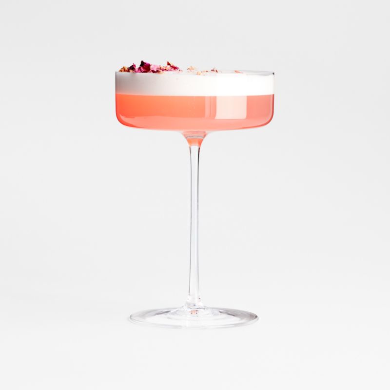 A cylindrical bowl with a flat base has a dramatic, contemporary look that lends a modern edge to the classic coupe. Perched upon a slender stem, the shallow glass serves cocktails or your favorite bubbly with a splash of drama. And despite its leggy, delicate appearance, the coupe glass is dishwasher-safe for ease of cleanup after toasts. Pair with the other wine glasses in our exclusive Edge collection for a unified cocktail hour or dining table.