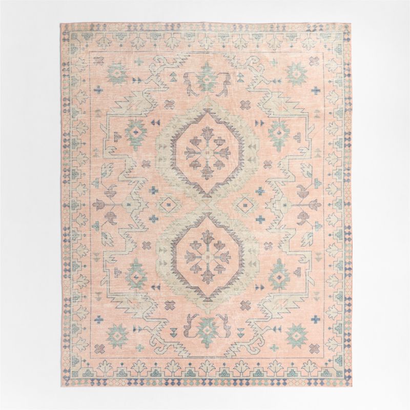 Inspired by traditional Persian rugs—but without the fuss—our Ember washable area rug blends geometric and botanical motifs in a soft mix of muted pinks and serene blues that's perfect for kid spaces. The vintage-inspired pattern is timeless, while the stain-resistant fabric is designed to handle the activities (and messes) of modern life. Machine-washable for easy cleaning, this low-pile rug even features a built-in non-slip backing that makes setup simple.