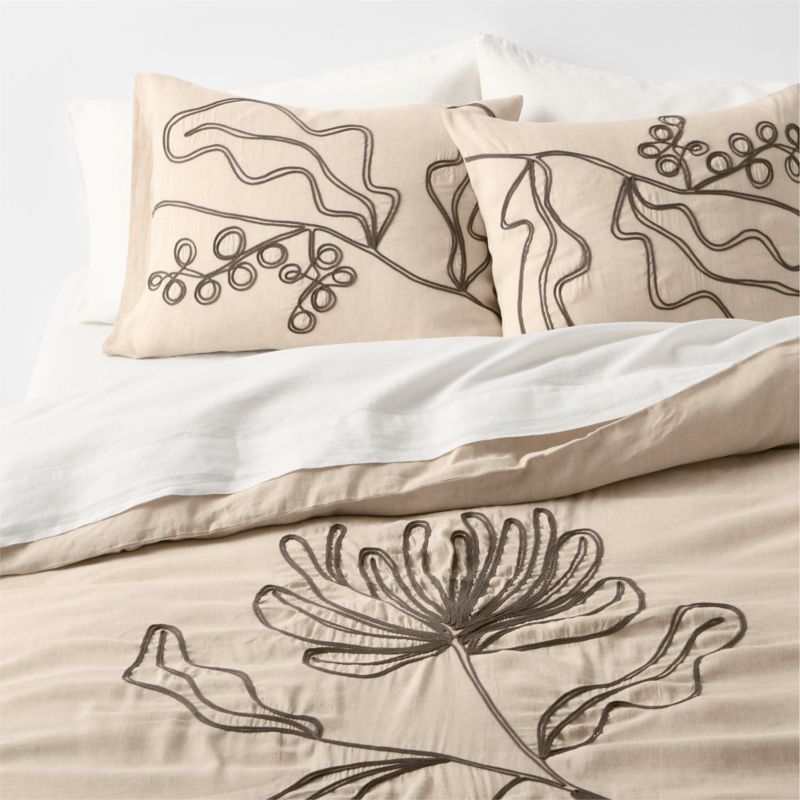 • View Embroidered Australian Botanical Organic Cotton Linen King Duvet Cover - image 1 of 10