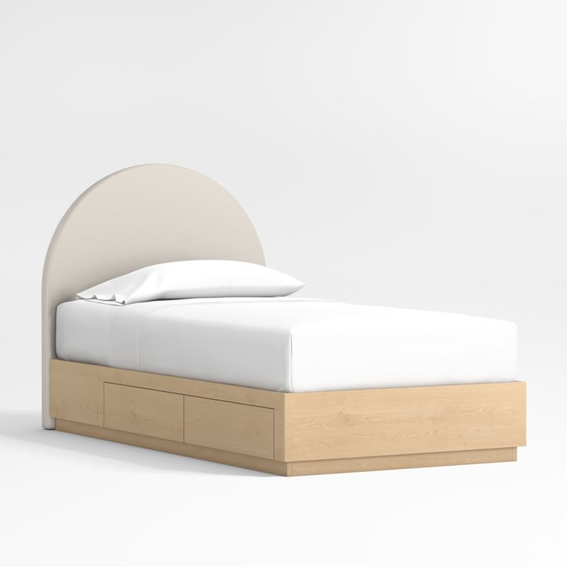 Emma Cream Upholstered Arched Kids Twin Bed with Natural Wood Storage Base