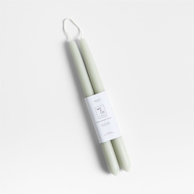 The timeless appeal of beeswax candles with a modern look. Skilled artisans pour 100% beeswax by hand, shaping a pair of elegant taper candles with cotton wicks. Inspired by eucalyptus, the fresh grey-green hue harmonizes beautifully with your decor.