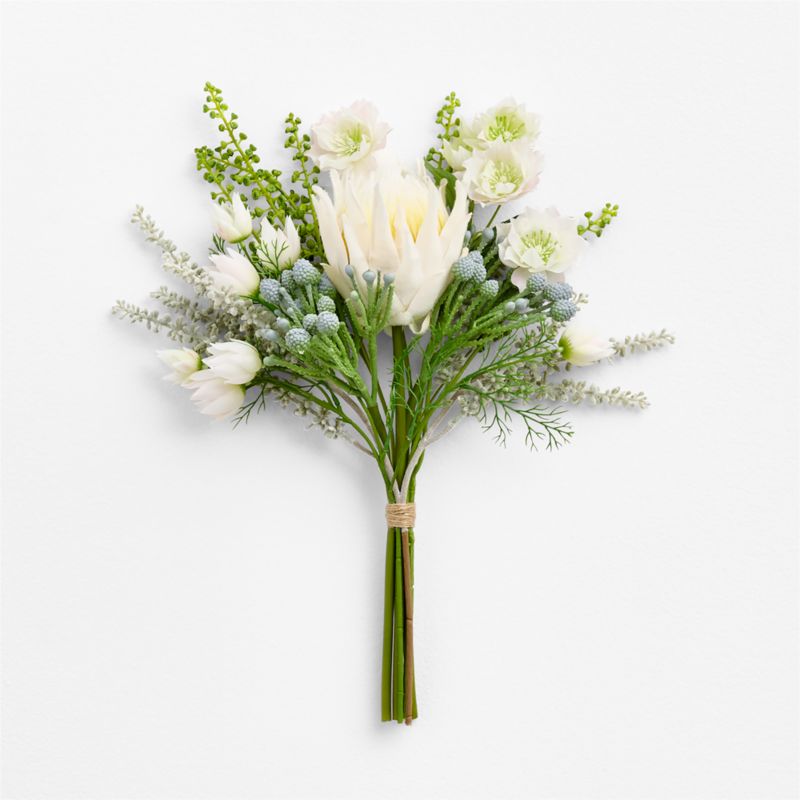 Our lush faux bouquet instantly infuses your home with the beauty of spring botanicals. Showcasing countless shades of green and cream, the arrangement gathers showy artichoke-like blooms with other incredibly realistic, textural botanicals in a fresh palette. Pop the bouquet in one of our modern or rustic vases for a no-fuss centerpiece.