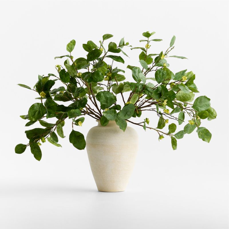 Deservedly adored for its delicious fruit, the persimmon tree also boasts lush foliage and the sweetest petite flowers. Our faux branch captures the ephemeral spring charm of the chartreuse-hued blooms for enjoyment year-round. The profusion of leaves is just as lush, life-like and unparalleled in quality. Tall and architectural, the branch stands on its own as a lively seasonal display in one of our floor vases (sold separately).