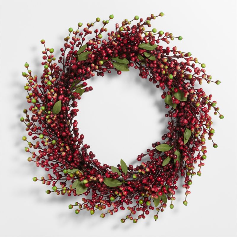 This delightfully realistic wreath graces the holiday home with a ring of red berry clusters and green leaves. Lovely hung on a covered entry door, living room wall or above a mantel, the faux wreath fools the eye with lifelike forms, natural color and flexible leaves and stems that can be shaped to look even more like the real thing.