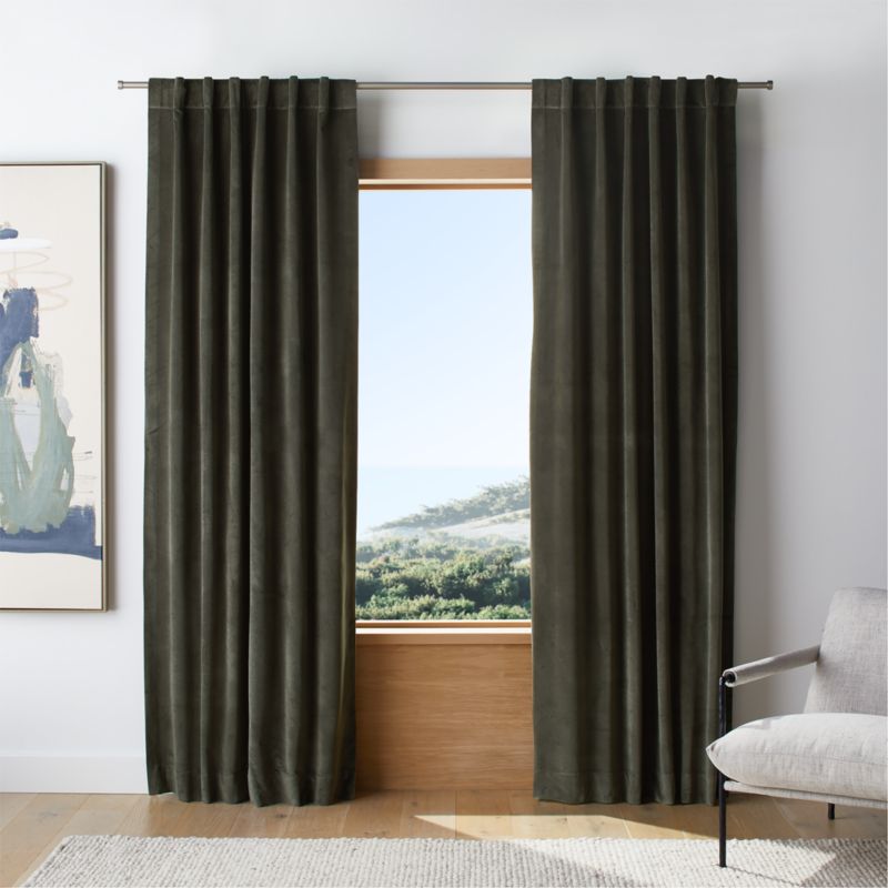 Ficus Green Cotton Velvet Window Curtain Panel 48"x108"
