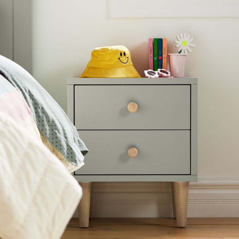 Finn Sage Green Wood 2-Drawer Kids Nightstand