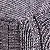 Handwoven of wool-blend yarn, our square pouf boasts rich textures and weaves that are irresistible to the touch. Seat, footrest and decorative object in one, the grey cube displays bands of raised texture on the sides. Poufs handily tuck under other furniture until needed, looking sculptural all the while, making them small-space essentials. Due to its handcrafted nature, each hand-fashioned pouf will be slightly unique.