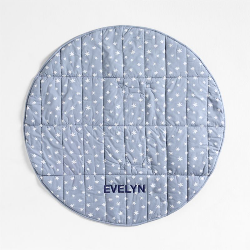 Our Fold and Go Portable Baby Mat is an essential for parents everywhere. Need a surface for an impromptu diaper change? A play mat for tummy time? A comfy spot for naps or picnics? This portable blue star-print mat checks all those boxes. Easy to fold up, store and transport, it has a 100% organic cotton percale exterior with polyester fill, so it's soft yet supportive for little ones. And it's conveniently machine-washable, so you can keep it fresh, clean and ready to travel. Embroider it with your baby's name for an extra-special touch.