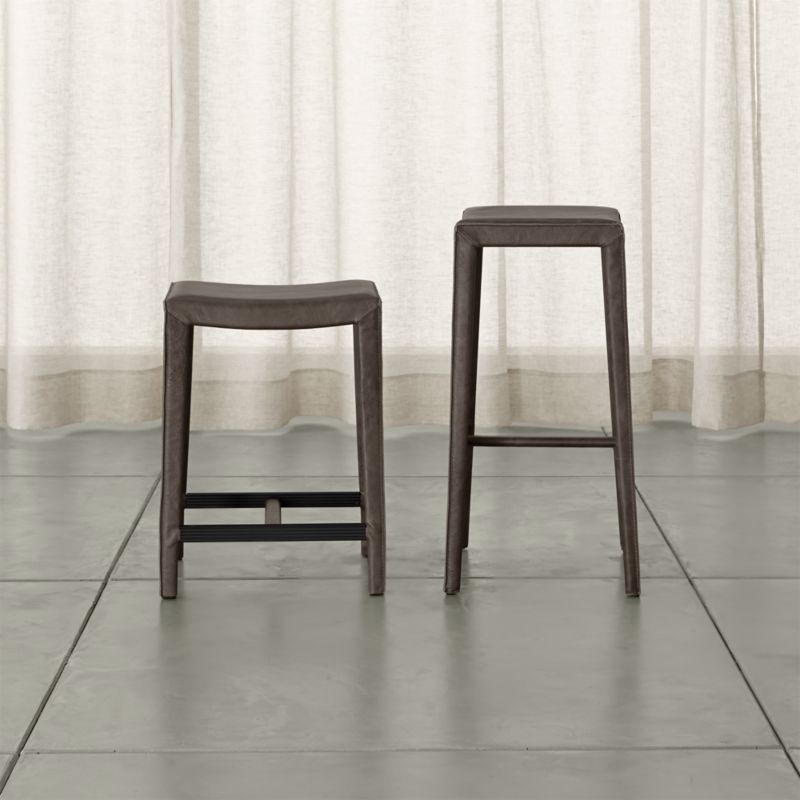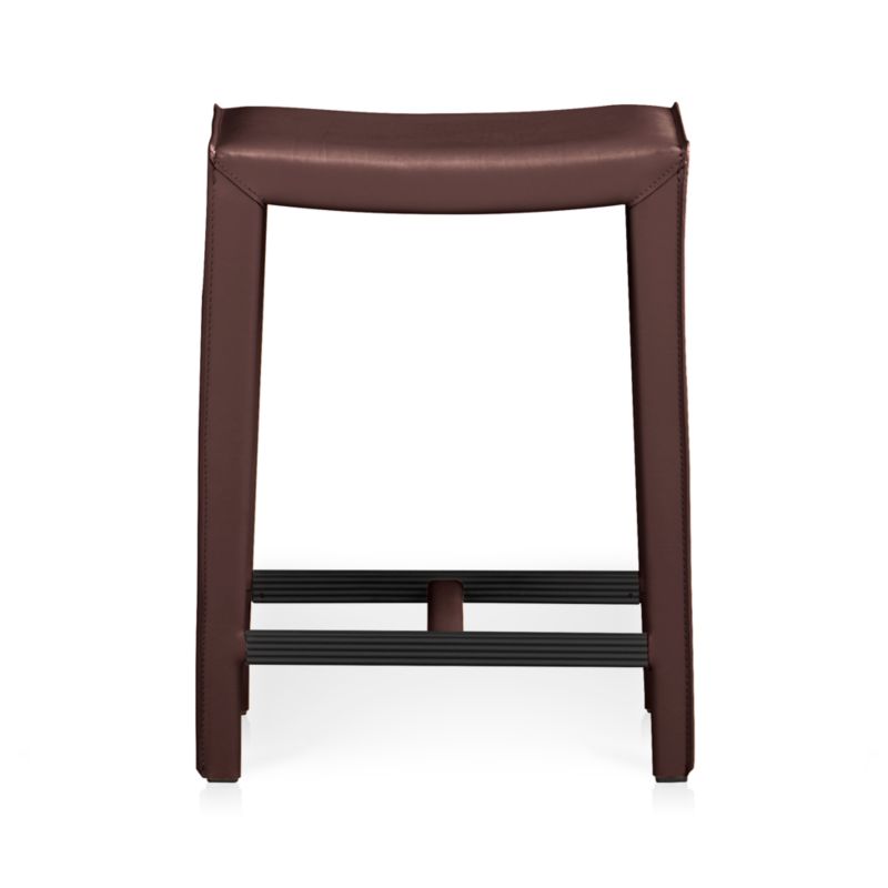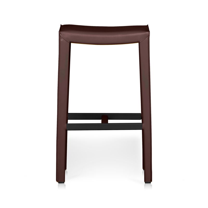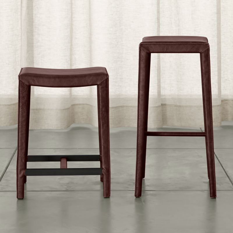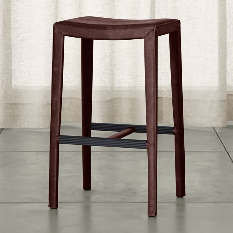 The Folio Merlot Top-Grain Leather Backless Bar Stool is a Crate and Barrel exclusive.