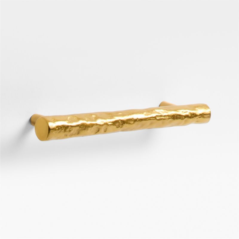Sometimes it's the small things that pull a room together. That's why we've designed a hardware collection with modern silhouettes, clean lines and a touch of tradition to give your kitchen or bath that perfect finishing touch. Forged with fluid organic texture, this brushed brass-finished cabinet pull was inspired by molten gold. The pull instantly elevates kitchen drawers and bathroom cabinet doors, installing easily with the included hardware.
