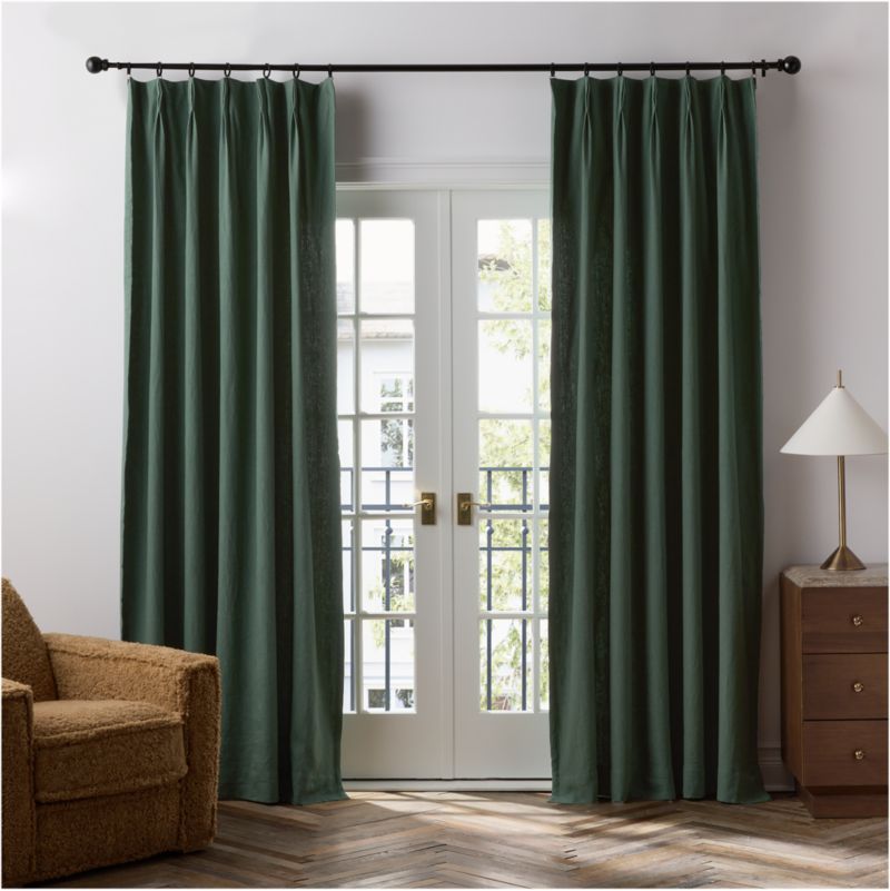 French Pleat Verdigris Green Linen Blend Window Curtain Panel 48"x84" by Jeremiah Brent