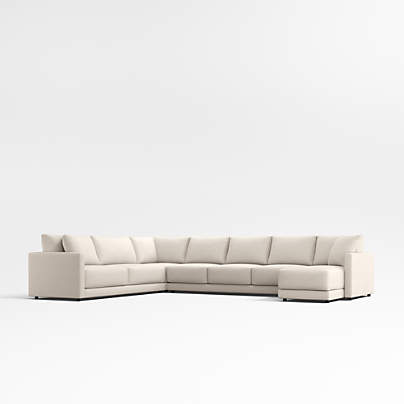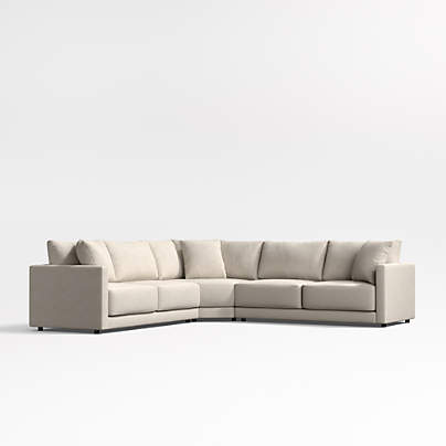 Striking the perfect balance between maximum comfort and modern style, our Gather sectional sofa is clean-lined and current. Boxy, extra-plush seat cushions have inner-coil construction for maximum comfort and durability. Fiber-filled back cushions settle you in for the ultimate lounge.