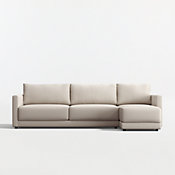 Striking the perfect balance between maximum comfort and modern style, our Gather sectional sofa is clean-lined and current. Deep-seated cushions are boxy and extra-plush made with inner-coil construction for maximum comfort and durability. Fiber-filled back cushions settle you in for the ultimate lounge.