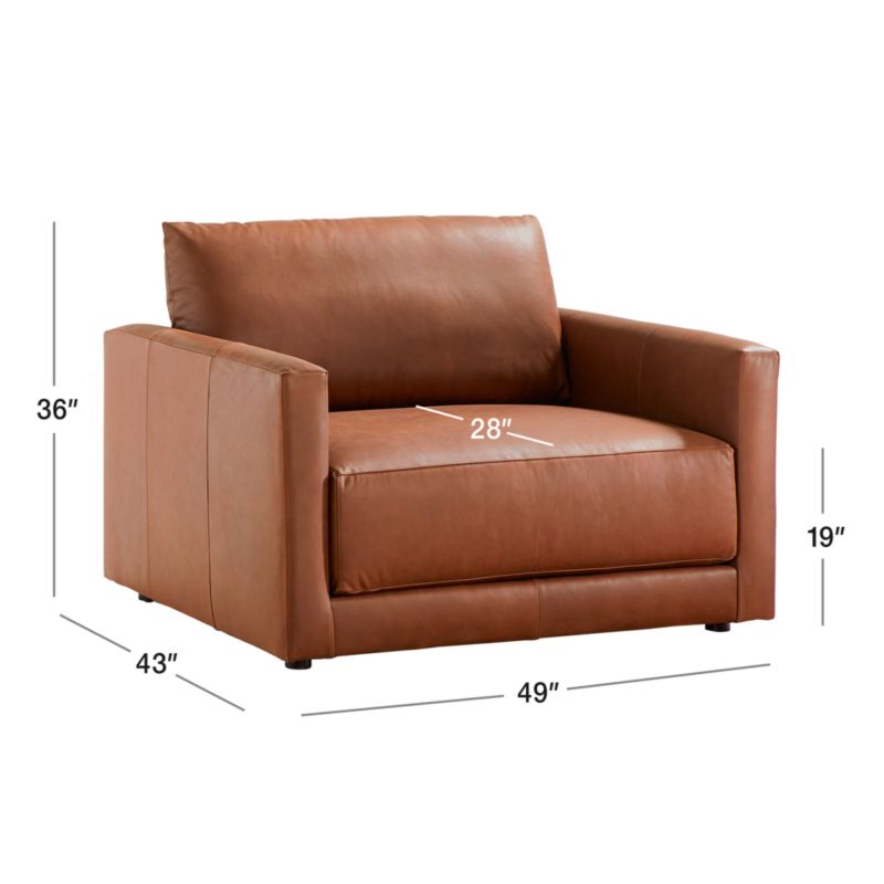 Gather Deep 49" Leather Chair and a Half26"Hheight49"Wwidth43"DdepthMeasurements are in inches.66.04Hheight124.46Wwidth109.22DdepthcmMeasurements are in centimeters.