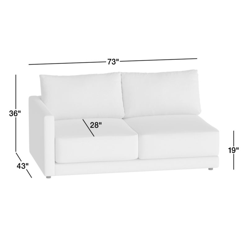 Everyone's invited to Gather. Clean-lined and current, our Gather sectional seating strikes the perfect balance between comfort and modern style. The left-arm apartment sofa breaks new ground with a thin deck that puts all the focus on its boxy, extra-plush seat cushions that sit deep and comfy. Trim top-stitching and a seamless armrest keep the look neat, not fussy.