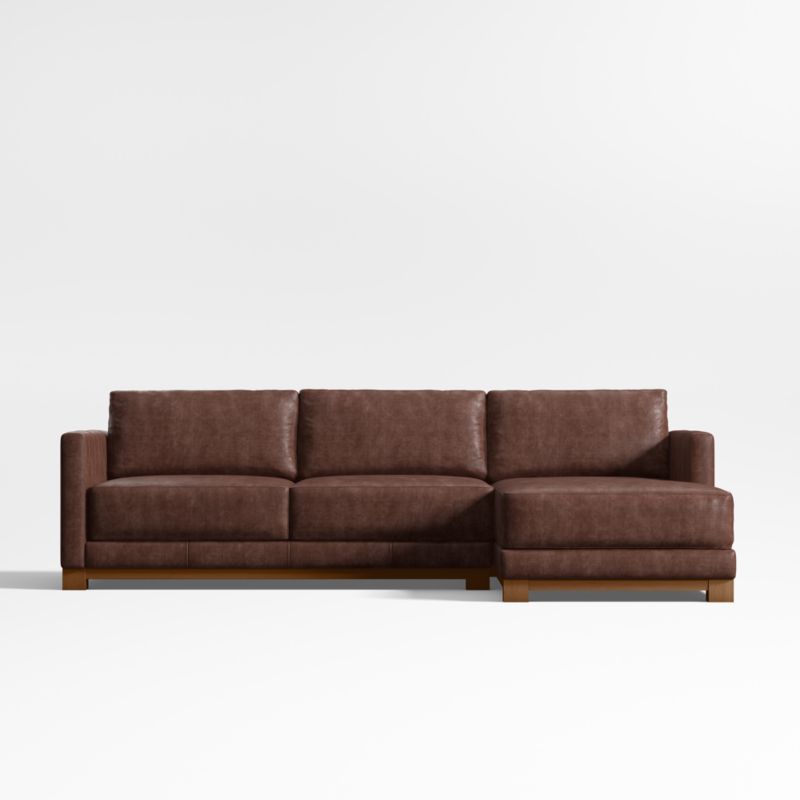 Gather Deep Wood Base 2-Piece Leather Sectional Sofa with Chaise Lounge