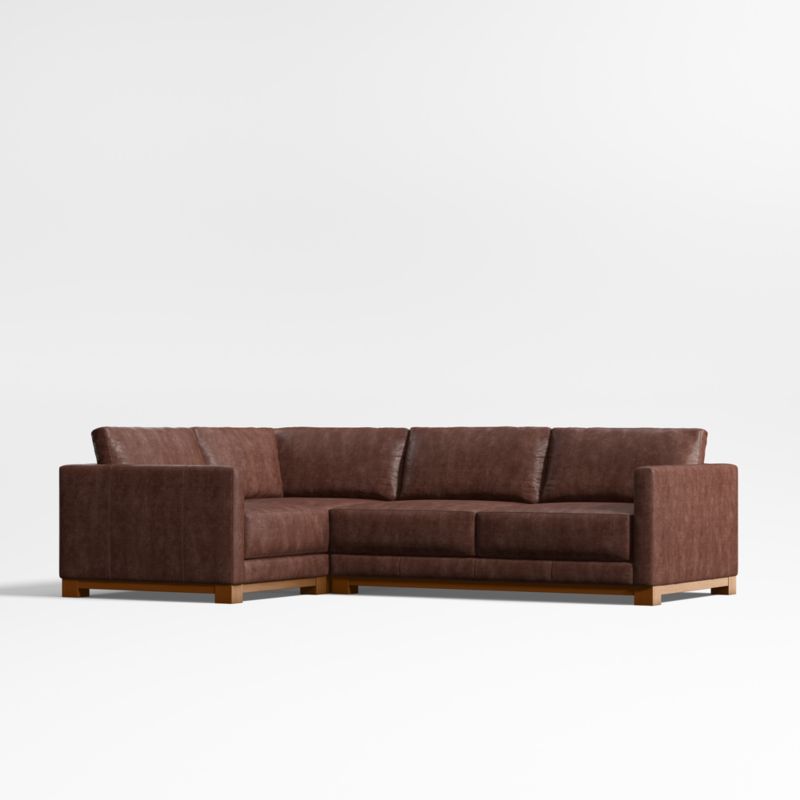 Gather Deep Wood Base 3-Piece L-Shaped Leather Sectional Sofa