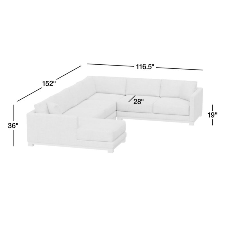 Gather Deep Wood Base 4-Piece L-Shaped Sectional Sofa with Chaise Lounge26height152width116.5depthMeasurements are in inches.66.04height386.08width295.91depthMeasurements are in centimeters.