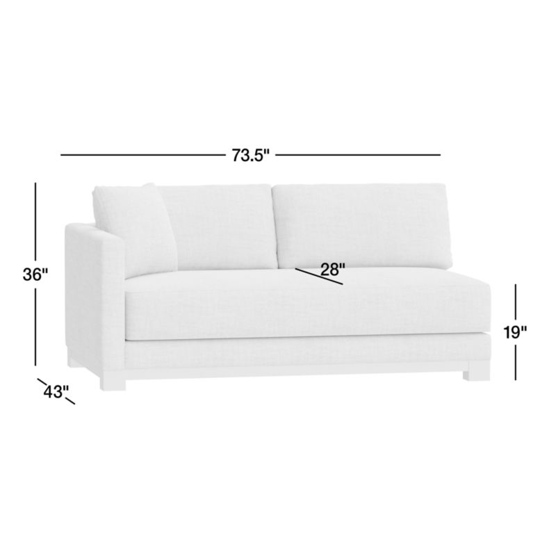 Gather Deep Wood Base Bench Left-Arm Sofa Sectional Piece26"Hheight73.5"Wwidth43"DdepthMeasurements are in inches.66.04Hheight186.69Wwidth109.22DdepthcmMeasurements are in centimeters.