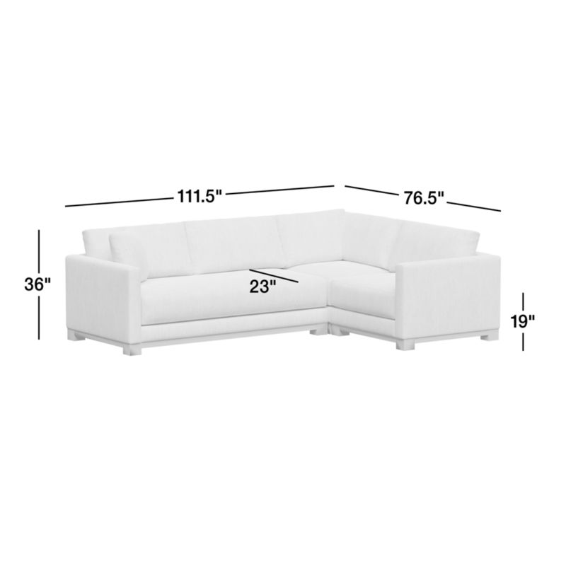Gather Wood Base 3-Piece L-Shaped Bench Sectional Sofa26height111.5width76.5depthMeasurements are in inches.66.04height283.21width194.31depthMeasurements are in centimeters.