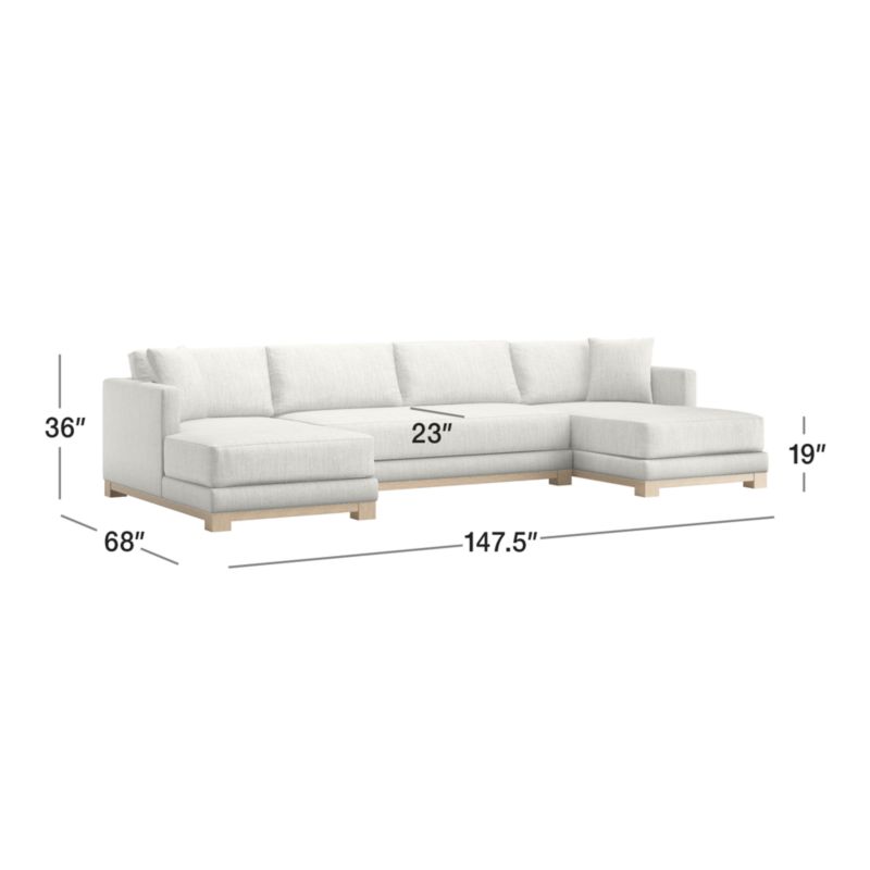 Gather Wood Base 3-Piece U-Shaped Bench Sectional Sofa with Double Chaise Lounge26height147.5width68depthMeasurements are in inches.66.04height374.65width172.72depthMeasurements are in centimeters.