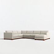 Gather Wood Base 4-Piece L-Shaped Bench Sectional Sofa with Chaise Lounge