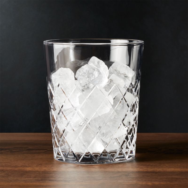 Handsome bar staple looks like an heirloom classic, molded in a diamond pattern to resemble cut crystal. A Crate and Barrel exclusive, our faceted ice bucket offers a timeless, sophisticated look at a great price and cleans up easily in the dishwasher when cocktail hour is complete. To complete your barware collection, pair with our other Hatch glasses and bar accessories.