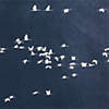 Our giclee print of the original photograph captures a flock of birds taking flight. Appearing as flecks of white against a dark sky of deep, modulated blue tones, the flight formation takes on an abstract quality that gives this work its contemporary edge. Each print is presented in a wood floater frame with a natural finish.