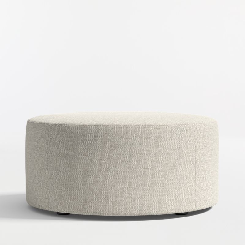 Simple geometric shapes and clean lines make our Highland ottomans so versatile. Pristine tailoring in a textured-weave performance fabric enhances the purity of form with topstitching for added definition. Able to partner with a wide range of furniture styles, the round ottoman serves as an extra seat, footrest or casual cocktail table.