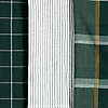 Keep dishes, counters and hands dry all winter long with our set of three seasonal dish towels in holiday hues. Pine green pinstripes adorn one snow white towel, an open windowpane in the same palette crisscrosses another, while a cozy plaid in golden, white and shades of green patterns the third. Woven of organic cotton that softens with each washing, the dish towels reverse to plush terry cloth for optimal absorbency.