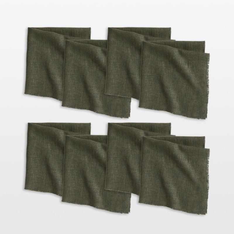 Inspired by carefree weekends in the Hudson Valley, our Hudson dinner napkins set the mood with its easy, breezy style. Yarn-dyed a shade we call Ficus Green , the linen-blend napkin relaxes the table with organic texture and the unstructured look of fringed edges.