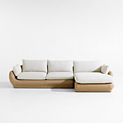 Inspired by the shape and weave of palm-leaf baskets, our Ipanema sectional refreshes outdoor living spaces with tropical vibes from far-flung places. The three-piece sectional—left- and right-arm chaises with an armless sofa— sculpts soft curves out of durable resin wicker. Subtly twisted and flecked with honey tones, the wicker mimics the natural look and texture of real plant fibers. Ivory performance cushion covers complement with a plain weave and linen-like flecks. And when it comes to relaxing, Ipanema nestles casual and cozy with soft arm and back pillows and foam-filled seat cushions with medium-firm support.