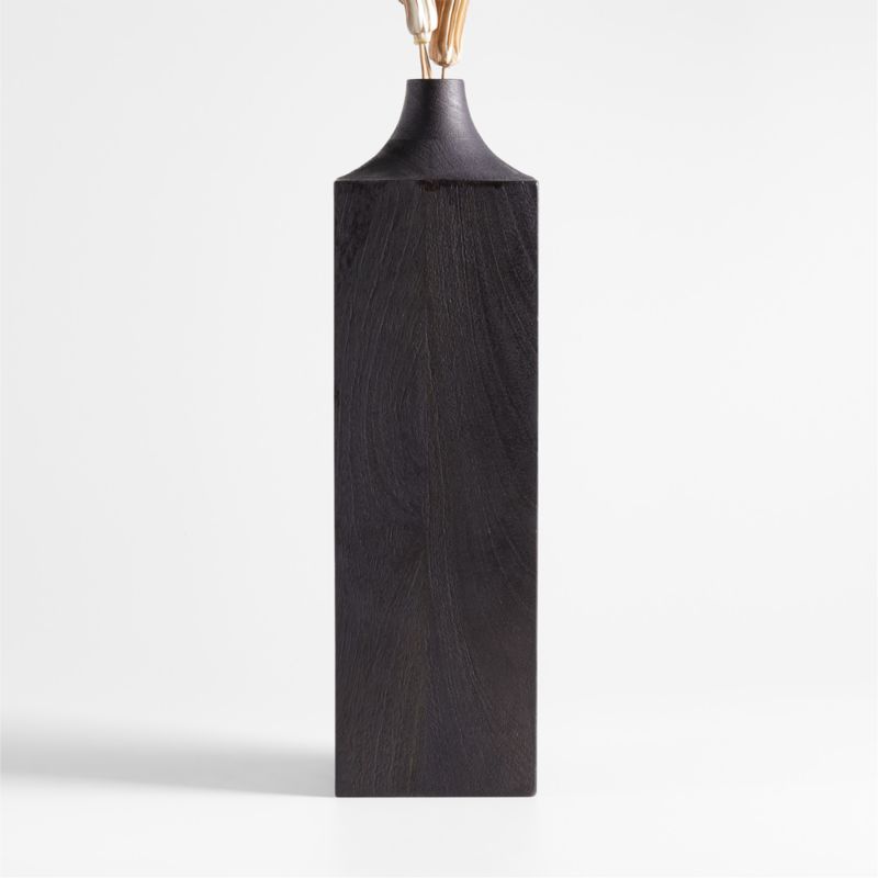 Our Izumo collection features beautifully simple designs inspired by Japanese woodworking. Crafted of renewable solid mango wood from trees no longer producing fruit, this large vase was made by piecing together flat pieces of wood into a solid block that is then turned on a lathe to create the swooping neck. The height and dark finish bring major drama. Pair with our Izumo ebonized candle holders for a striking-yet-understated display on a credenza, mantel or dining table.