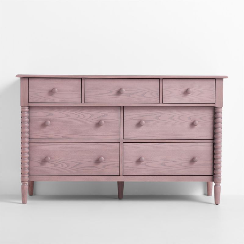 A bestseller for a reason, our Jenny Lind wide 7-drawer dresser is a showstopping storage solution that keeps everything organized. The iconic collection, with its intricate wood turnings, has been made in the same location with the same classic design for more than 20 years—but its modern sensibility means it hasn't aged a day. Each spindle is made from a single piece of wood, then hand-sanded to capture every gorgeous detail. The lilac rose stain allows the rich wood grain to show through and adds a hit of soft color to a space, while the slight overhang of the top drawers give the piece a unique profile. Fun fact: This forever classic is named for the 19th-century opera singer Jenny Lind, who was the pop icon and influencer of her day.